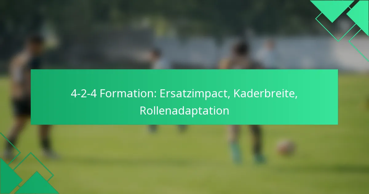 Die 4-2-4-Formation ist ein dynamisches taktisches Setup im Fußball, das eine starke offensive Präsenz mit einer soliden defensiven Grundlage in Einklang bringt. Die Effektivität dieser Formation wird stark von den Ersatzspielern beeinflusst, die frische Energie einbringen und Strategien während des Spiels anpassen können. Darüber hinaus spielt die Tiefe des Kaders eine entscheidende Rolle, da sie es den Teams ermöglicht, das Leistungsniveau aufrechtzuerhalten und während des Spiels sowie der Saison notwendige Anpassungen vorzunehmen.